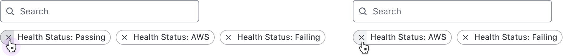 The leading dismiss icon allows mouse users to clear multiple Tags quickly because they do not need to move their mouse.